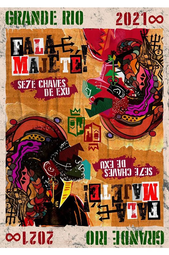Transbordado com expressões e falas retiradas do documentário “Estamira”, de Marcos Prado, além de fragmentos de poemas, canções e pontos de macumba. Inspirado nas provocações de Conceição Evaristo, Helena Theodoro, Alberto Mussa, Luiz Antonio Simas (“Exu é uma escola de samba!”) e Luiz Rufino; e nas narrativas orais de Luiza Maria e Dib Haddad. Dedicado aos inúmeros torcedores apaixonados que nos ajudaram a tecer este