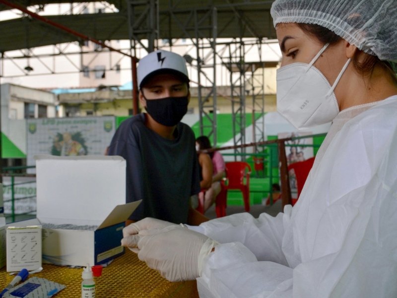 Durante toda a manhã os moradores do Complexo do Alemão compareceram à quadra da Agremiação para fazerem testes da Covid-19 e glicemia, dentro dos padrões de segurança sugeridos pelas autoridades sanitárias.