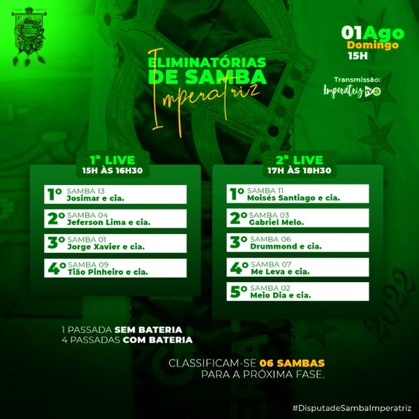 A transmissão da disputa será no canal oficial da Escola, o TV Imperatriz Leopoldinense, no YouTube.