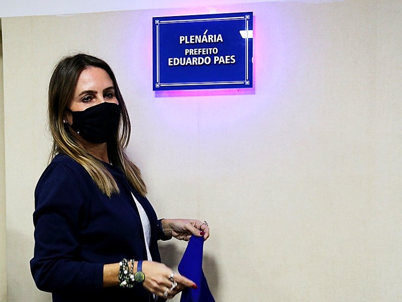 Daniela Maia, presidente da Riotur, descerrou a placa em homenagem ao Prefeito Eduardo