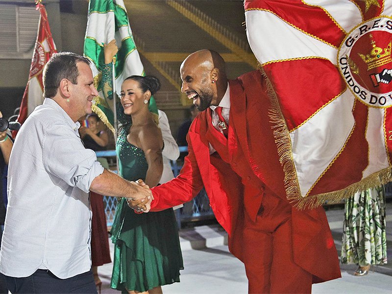 Eduardo Paes cumprimenta o mestre-sala Julinho, da Viradouro