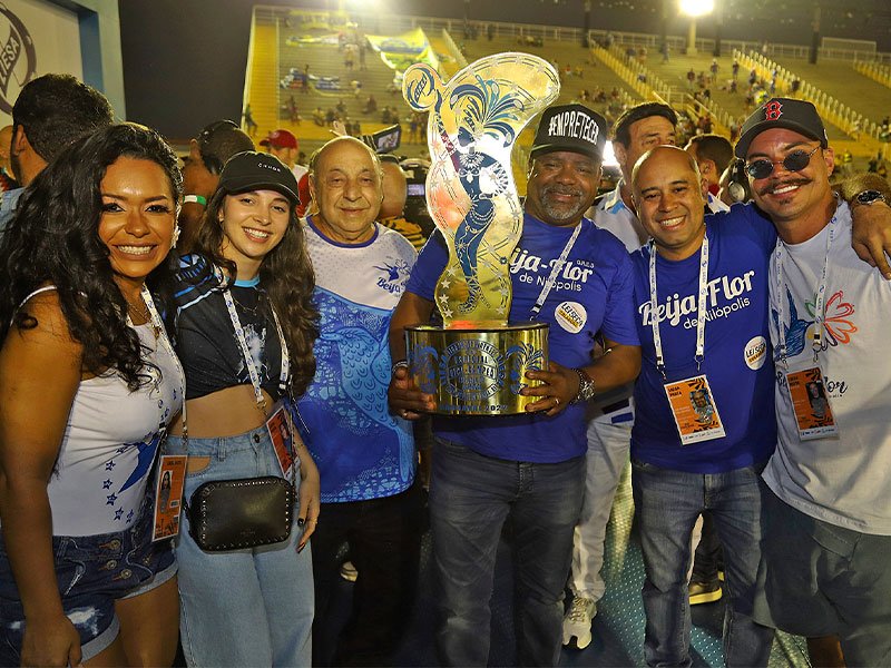 O presidente Almir Reis comanda a Família Beija-Flor na comemoração do vice-campeonato