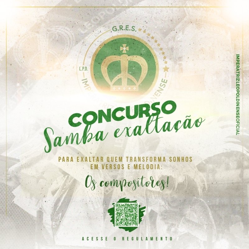 Para isso, a Escola anuncia o Concurso de Samba-Exaltação, um evento tradicional que, por muito tempo, representou o talento de nossos poetas em eventos de meio de ano. E agora retorna com o objetivo de revelar novos valores.