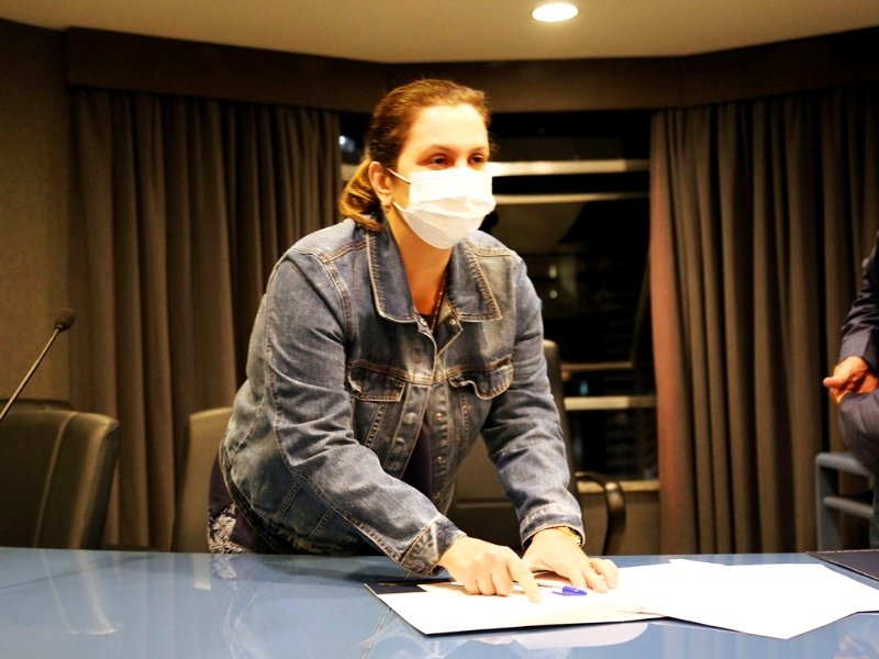 Cátia Drumond, presidente da Imperatriz, foi a primeira a assinar o contrato