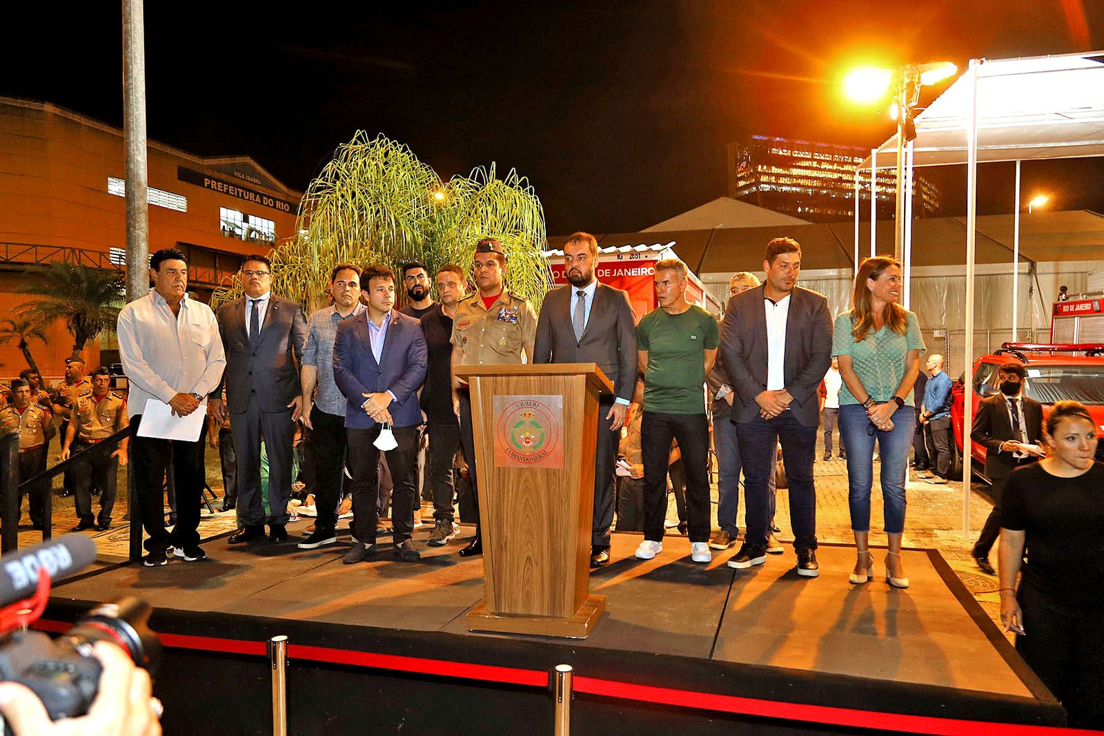 O governador do Estado, Cláudio Castro, inaugurou na noite desta última segunda-feira, 13, o posto avançado do Corpo de Bombeiros da Cidade do Samba. Logo após a solenidade, acompanhado do presidente da LIESA, Jorge Perlingeiro, do presidente da Câmara Municipal do Rio, vereador Carlo Caiado, do secretário estadual de Turismo, Tutuca, do deputado estadual Chiquinho da Mangueira, da presidente da Riotur, Daniela Maia, e um grupo de seis vereadores, o governador visitou as instalações da nova unidade, que já está em funcionamento. O Secretário de Defesa Civil e Comandante-Geral do Corpo de Bombeiros, coronel Leandro Monteiro, ressaltou que o posto avançado dará maior segurança não apenas à Cidade do Samba, mas também à Zona Portuária e ao Túnel Marcelo Alencar.