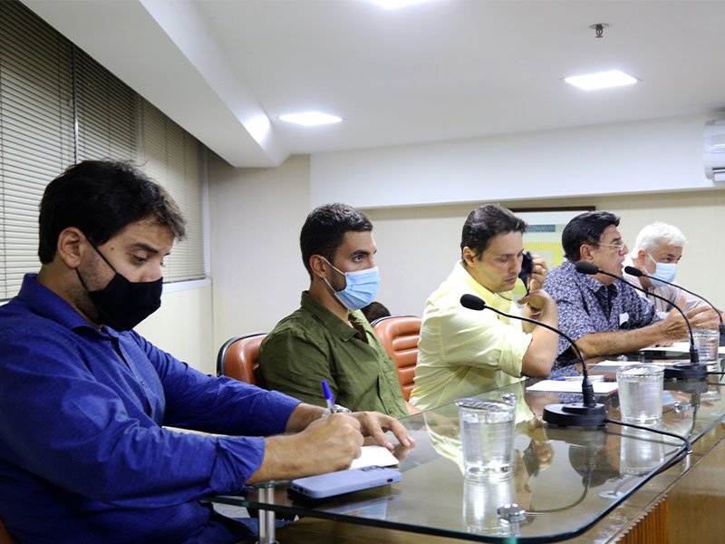 Os diretores Pedro Gomes, de Finanças, Gabriel David, de Marketing, o Vice Hélio Mota, e o presidente da LIESA, Jorge Perlingeiro, ao lado de Bruno Matos, Vice-Presidente da Riotur, deram sequência à plenaria