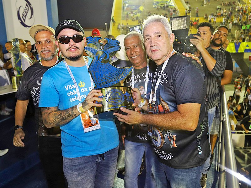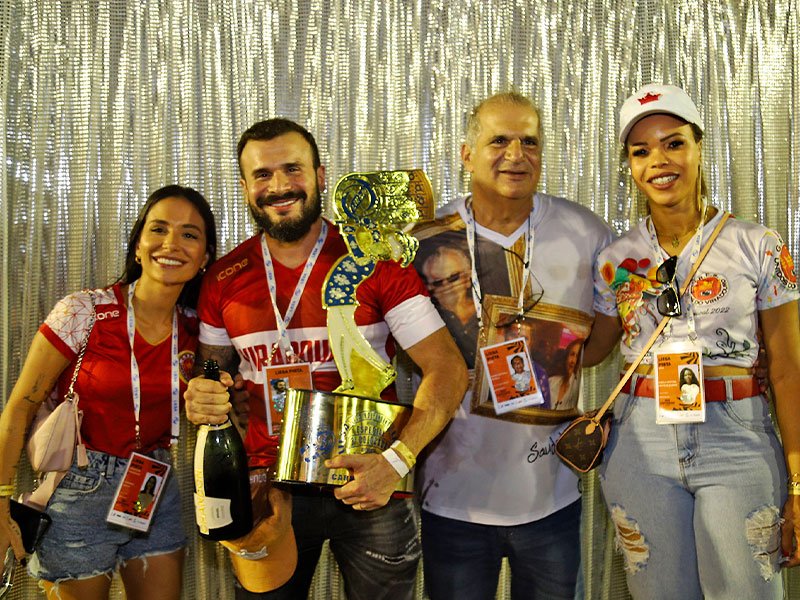 O presidente André Vaz, à esquerda, compartilha a alegria de um bom desfile do Salgueiro