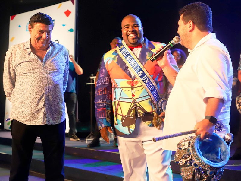 O novo Rei Momo, Diferson Mendes, antes de ser coroado pelo novo presidente da Riotur, Ronnie Costa