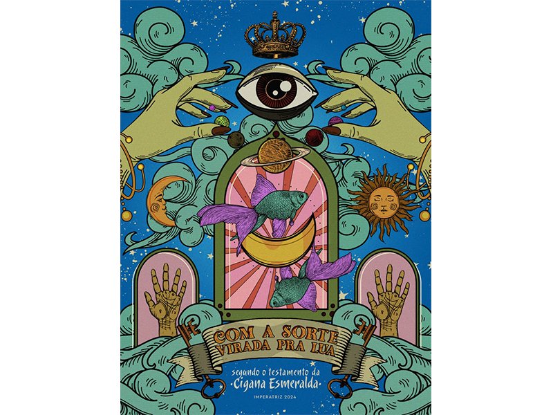 "Com a sorte virada pra lua, segundo o testamento da cigana Esmeralda" é o título do enredo que a Imperatriz Leopoldinense apresentará no carnaval de 2024. A ideia é mais um enredo pesquisado, desenvolvido, transformado em narrativa e visualidade pelo carnavalesco Leandro Vieira. Segundo o artista, a proposta para o carnaval 2024 dá continuidade ao seu interesse em se debruçar sobre o Brasil e a obra de escritores populares que souberam dar contorno à imaginação de caráter fantástico como uma extraordinária vocação do povo brasileiro.
