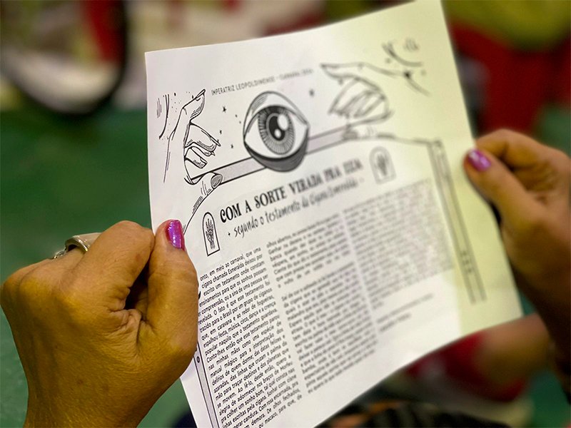 A diretoria da Imperatriz Leopoldinense e o carnavalesco Leandro Vieira apresentaram, na noite desta terça-feira (23.05), a sinopse do enredo "Com a sorte virada pra lua, segundo o testamento da cigana Esmeralda". O encontro aconteceu na quadra da escola, em Ramos, Zona Norte do Rio, e contou com a presença de compositores que participarão do concurso para a escolha do samba-enredo.