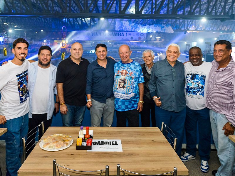 O diretor de Marketing da LIESA, Gabriel David; o presidente da Riotur, Ronnie Costa; o diretor de Operações da Riotur, Gustavo Mostof; o Vice-Presidente da Liesa, Hélio Mota; o presidente de honra da Beija-Flor, Aniz Abrahão David; o Diretor de Patrimônio da LIESA, Moacyr Henriques; o Diretor de Carnaval da Liga, Elmo José dos Santos; o presidente da Beija-Flor, Almir Reis; e o administrador da Cidade do Samba, Edson Marcos